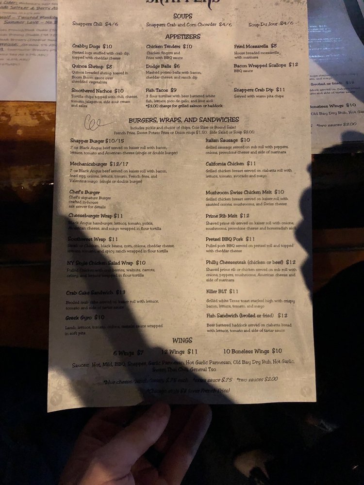 Snappers Bar & Grill is a vibrant spot in Mechanicsburg, PA, offering a mix of New American cuisine, bar favorites, and fresh seafood dishes. With a range of amenities like outdoor seating, free Wi-Fi, and happy hour specials, it's a great place for groups, families, or a casual night out. The menu features mouthwatering appetizers like Crabby Pretzel and Shell Shock Shrimp, along with Weekly Specials like the Wild Boar Burger. Reviews rave about the friendly service and delicious food, such as the BLT and Cheeseburger Wrap. The ambiance is welcoming, with a cool vibe that adds to the overall dining experience. Don't miss out on the tempting desserts and be sure to try the mulligatawny soup for a flavorful treat. Overall, Snappers Bar & Grill is a must-visit destination for a satisfying meal and enjoyable evening.